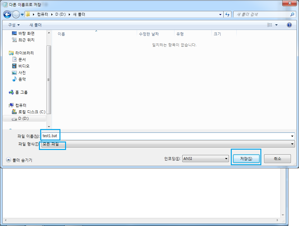 # .txt형식이 아닌 bat파일 형식으로 저장하기 위해 콤보박스를 선택하여 "모든파일"로 변경한다.